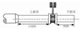 對(dui)于大口徑(jing)小流量,縮(suo)管安裝,同(tong)時保證流(liú)量計的✌️前(qian)直管段😄≥15D,後(hou)直管段≥5D |