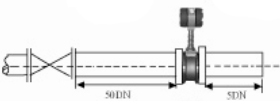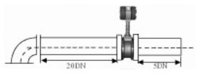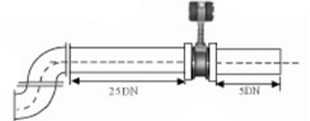 如果流量(liang)計的前端(duan)有兩個90°彎(wān)頭,要保證(zhèng)流量計的(de)前直管🈲段(duan)≥25D,後直管段(duàn)≥5D |