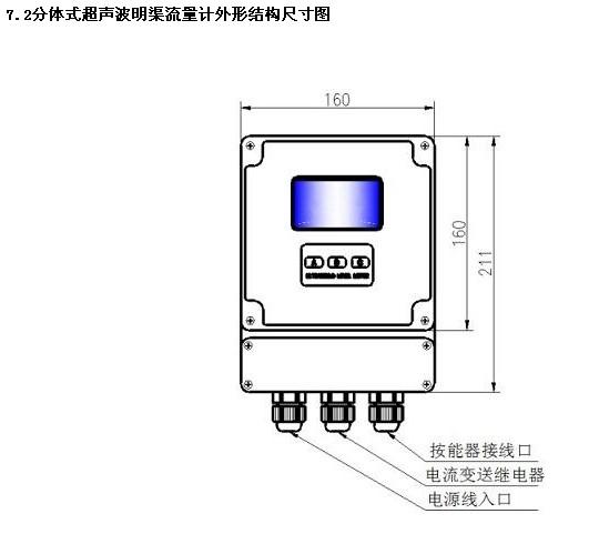 7.1一體式超(chao)聲波明渠流量(liang)計外形結構尺(chi)寸圖
